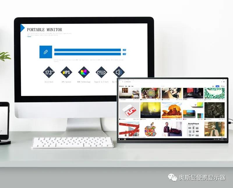 如何娱乐和工作一起开启,一台好用的便携显示器即可;奥斯曼173FC便携显示器,为您打造舒适简约的办公娱乐场景,轻松解锁新式生活。